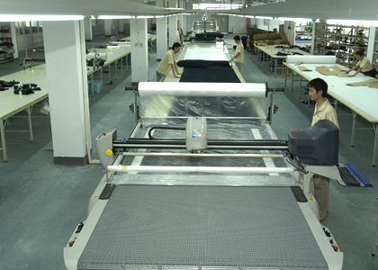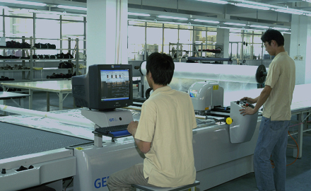 公司采用CAD計算機(jī)輔助排料系統(tǒng)進(jìn)行排料,該系統(tǒng)準(zhǔn)確、高效。鋪料機(jī)代替手工鋪料的優(yōu)點(diǎn)使鋪料均勻、整齊、松緊適宜、降低工人勞動強(qiáng)度。
